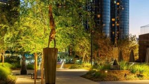 The sculptures were originally part of CRA/LA’s mission in 1985 to incorporate public art in redevelopment projects and revitalize Downtown Los Angeles. The four sculptures are currently situated in an exterior landscaped setting that Graham’s son, Steven Graham, consulted on as part of the renovation at Wells Fargo Center.