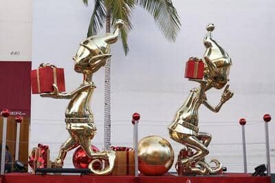 Aided by festive Holiday Helpers —whimsical décor of glowing elves in silver and gold along Rodeo Drive.