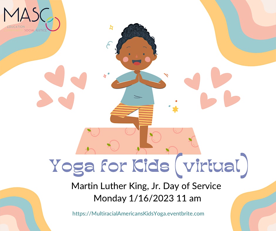 Join our virtual MLK yoga for kids session on January 16, 2023! This fun community event is in honor of Martin Luther King Jr., Day of Service presented by the Multiracial Americans’ supporter Aurora Drysdale of Merfamily Asana Gallery. All experience levels are welcome!