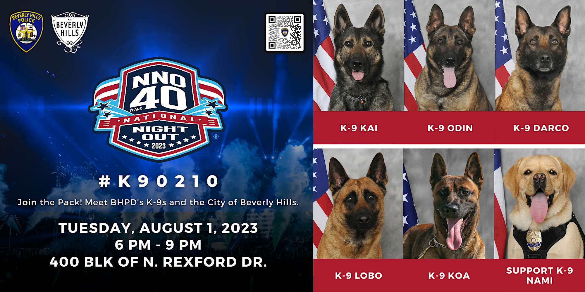 Join us at National Night Out on August 1! Celebrate with our heroic K-9s, enjoy thrilling demos, food trucks, live DJ, and fun for all! Save the Date! Join us for National Night Out on Tuesday, August 1, 2023!🐾 This year, we're honoring BHPD's K-9s! 🐶 Meet BHPD's K-9 Unit and Support K-9 Nami. K-9 […]